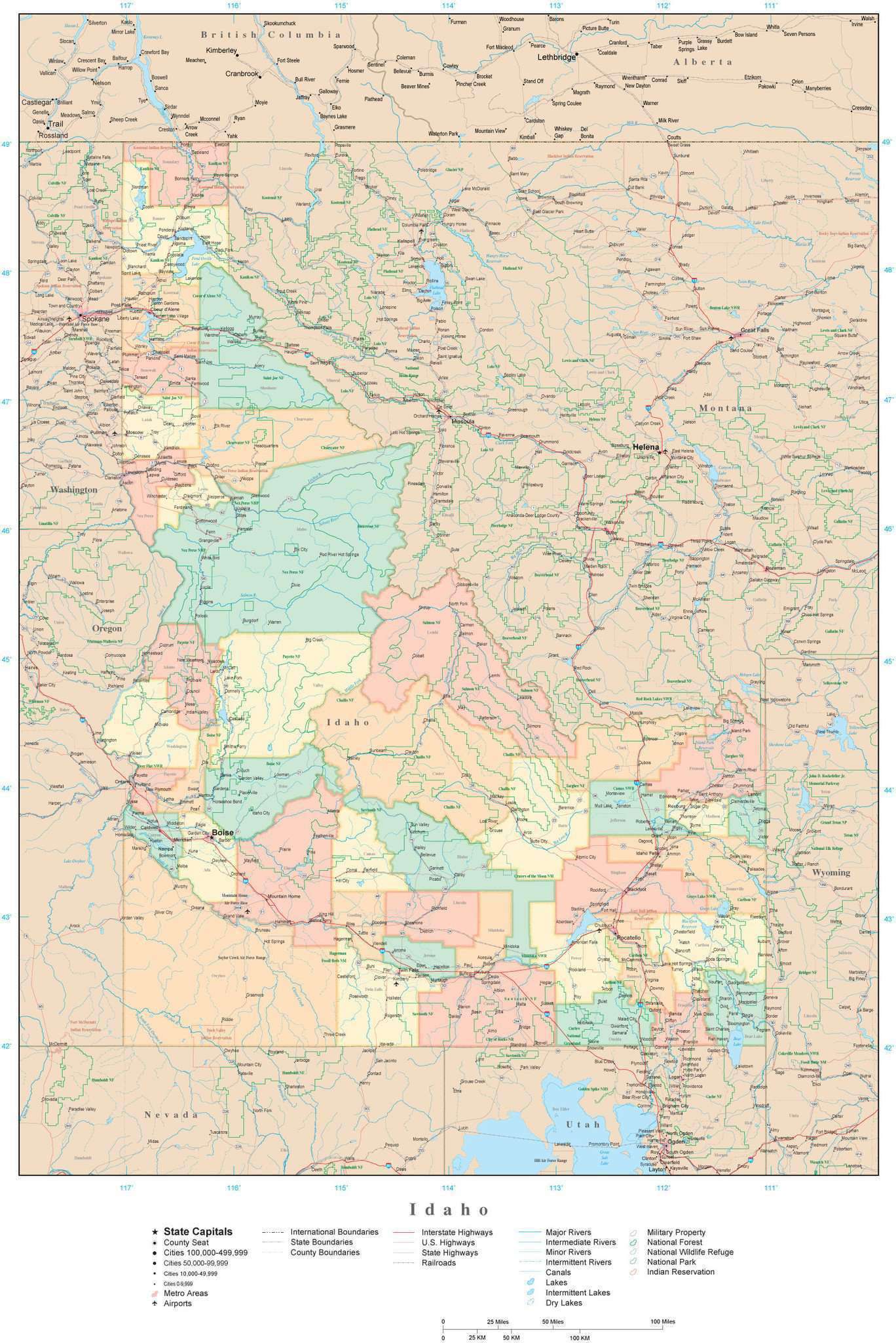 Idaho State Map in Adobe Illustrator Vector Format. Detailed