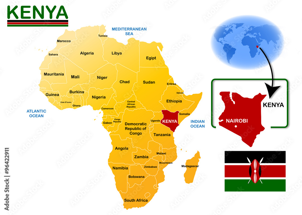 Kenya, map and flag Stock Vector | Adobe Stock