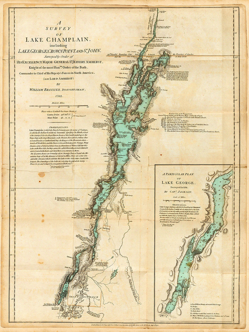 1759 map depicting Lake George and the capture of Fort Ticonderoga