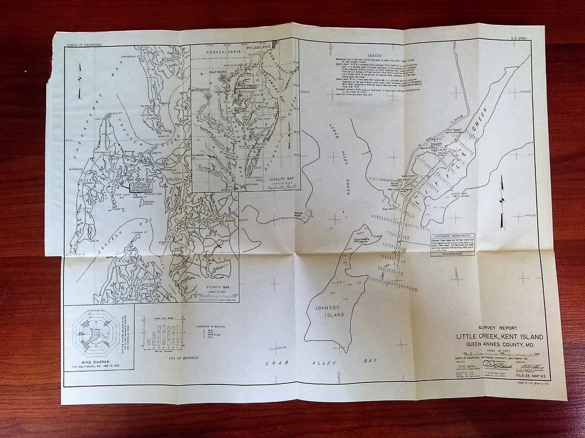 1949 Survey Map Improvement Little Creek Kent Island Queen Annes